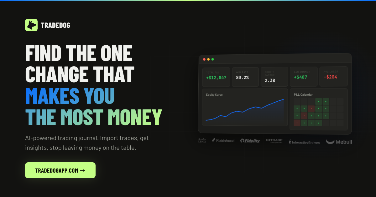 I built Trade Dog because I was tired of staring at spreadsheets trying to figure out why my P&L was flat despite winning 80% of my trades. Turns out I was giving it all back on afternoon revenge trades. A simple rule — stop at 2 PM — changed everything.